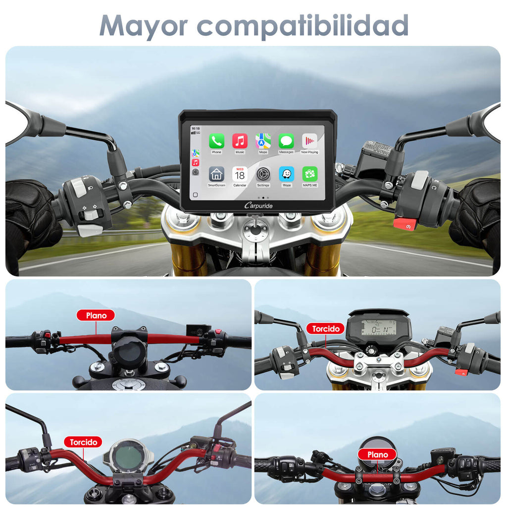 Carpuride W702RS Pro, estéreo para motocicleta Plug-and-Play con sistema BSD de detección de radar.